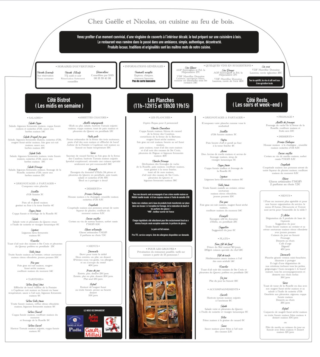 The menu at Art Et Galets in Villeneuve offers a delightful blend of flavors, showcasing both creativity and tradition. Start your meal with the Roquette, a dish that combines fresh, peppery arugula with a delicate dressing that perfectly complements its earthy notes. The Amusé Bouche provides a charming bite-sized appetizer, setting the tone for the rest of the meal with its intricate flavors. The main courses feature a variety of thoughtfully prepared dishes, each highlighting the restaurant's commitment to using high-quality ingredients. Whether you're in the mood for a light yet satisfying option or something more indulgent, Art Et Galets’ menu offers something for everyone, making each dining experience here feel uniquely special. The harmonious balance of taste, texture, and presentation makes it clear why this restaurant continues to stand out in the region.